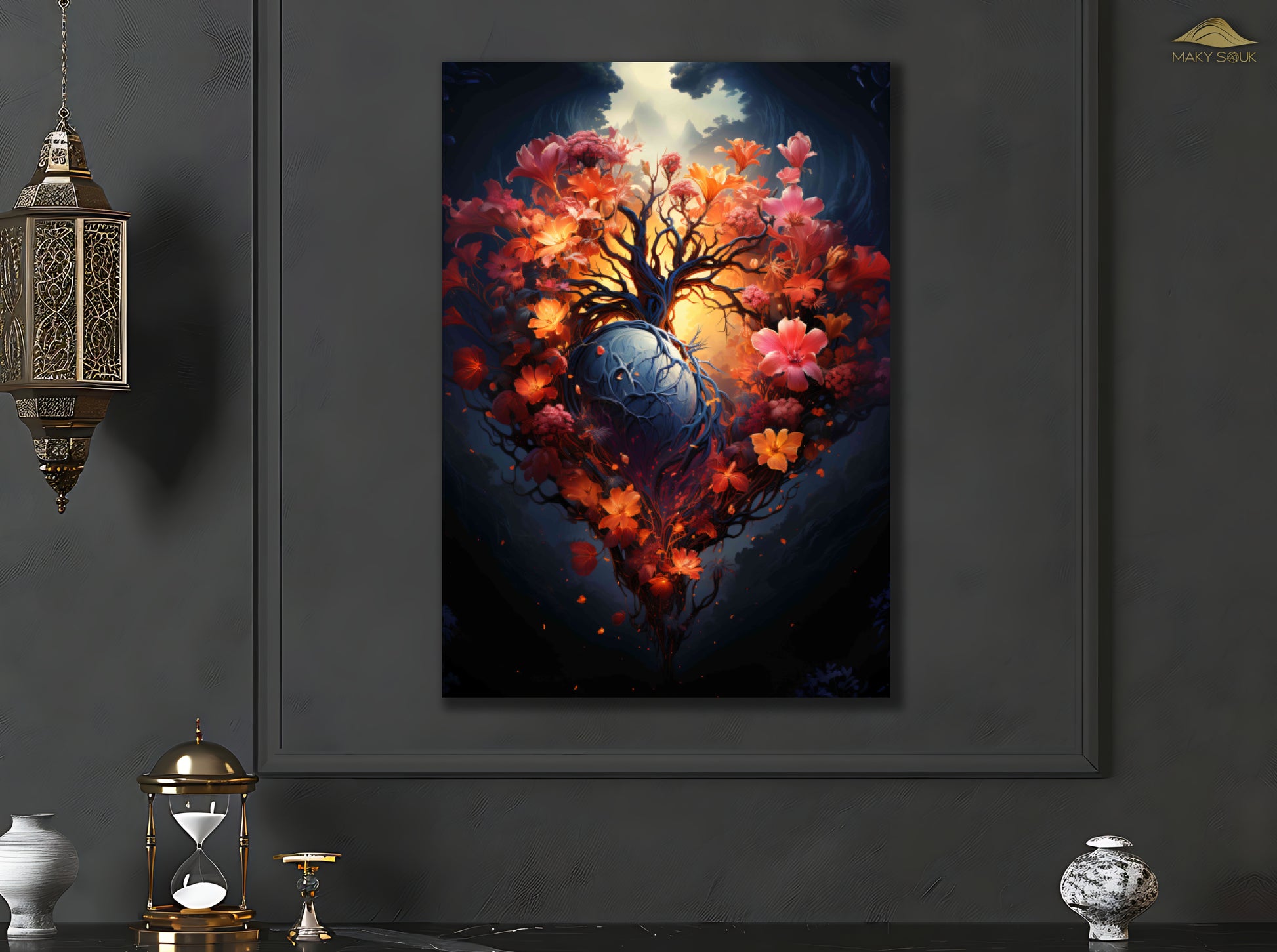 Erleben Sie die faszinierende Kombination aus lebendigen Farben und mysteriöser Stimmung mit unserem Canvas-Motiv. Die kontrastreiche Darstellung vereint die Liebe und Fröhlichkeit der Blüten mit der Intensität der Umgebung und schafft so ein einzigartiges und ausdrucksstarkes Kunstwerk, das jedem Raum Tiefe und Charakter verleiht.