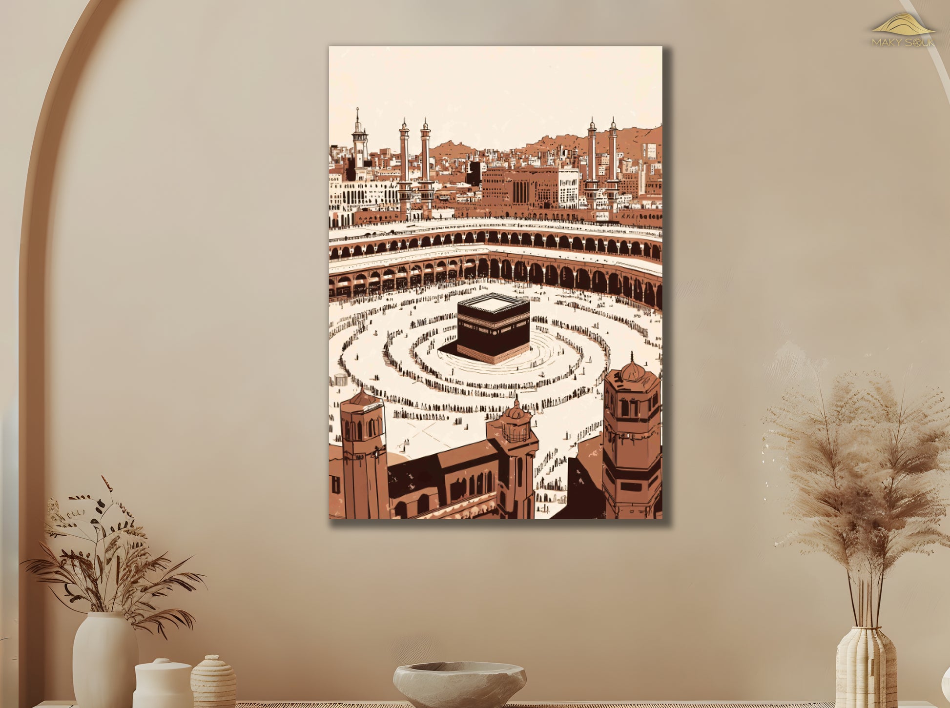 Erleben Sie die stille Majestät der Kaaba in einem minimalistischen Design. Dieses Canvas-Motiv fängt die sakrale Einfachheit und die beeindruckende Präsenz des heiligen Gebäudes in einem modernen Stil ein. Die reduzierte Farbpalette und die klare Linienführung schaffen ein elegantes Kunstwerk, das Ruhe und Erhabenheit ausstrahlt und jedem Raum eine besondere, zeitgenössische Note verleiht.