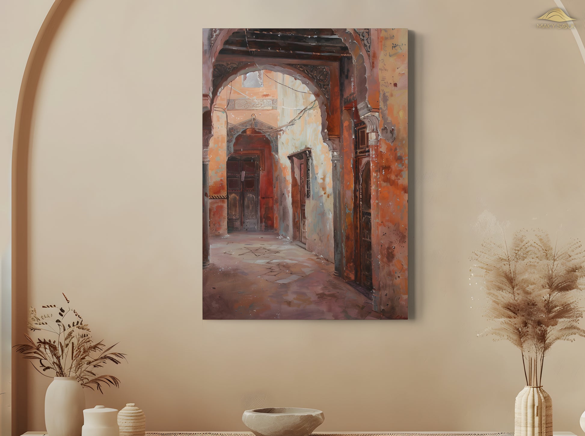 Tauchen Sie ein in die raffinierte Schönheit der arabischen Architektur. Dieses Canvas-Motiv fängt die elegante Baukunst und die kunstvollen Details traditioneller arabischer Gebäude ein und bringt einen Hauch von kultureller Finesse in Ihr Zuhause. Die zeitlose Architektur strahlt eine beruhigende und anspruchsvolle Atmosphäre aus, die jeden Raum bereichert.