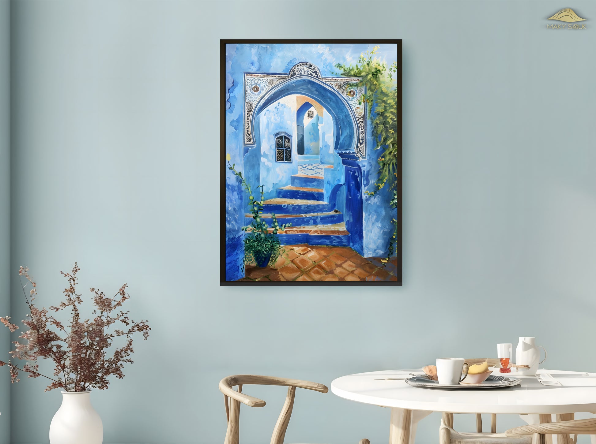 Tauchen Sie ein in die atemberaubende Welt der blauen Stadt Chefchaouen. Dieses Poster fängt die charakteristischen Blautöne und die einzigartige Atmosphäre Marokkos ein und bringt sie direkt in Ihr Zuhause. Der detailreiche Druck betont die Schönheit der traditionellen arabischen Baukunst und schafft ein visuelles Erlebnis, das Ihre Wände zum Leben erweckt.