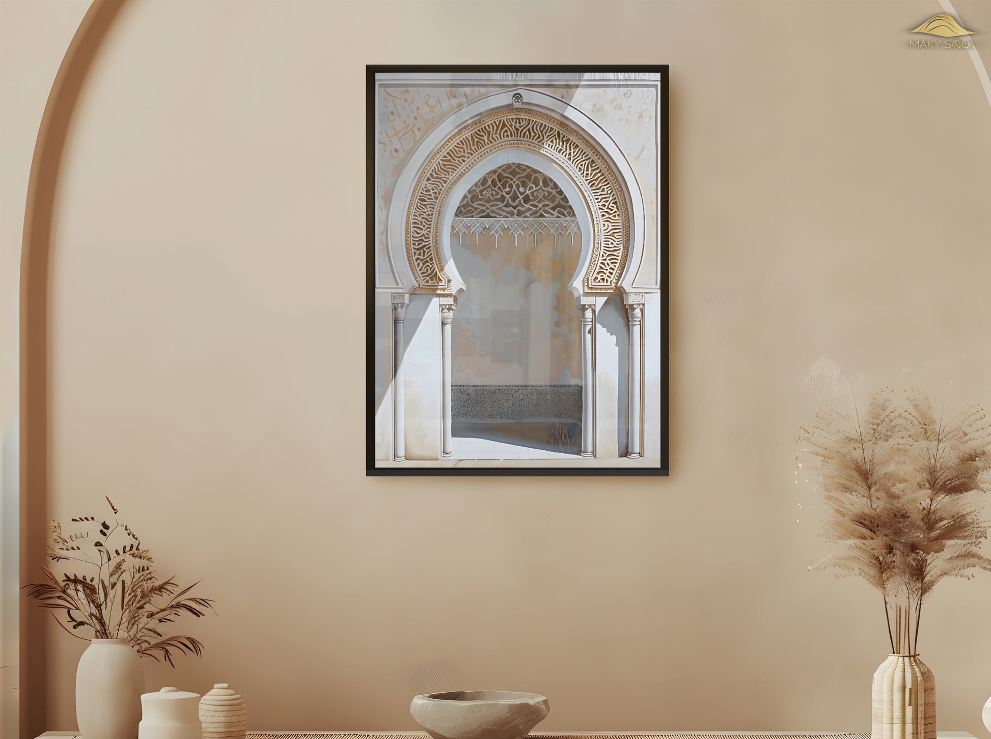 Tauchen Sie ein in die raffinierte Schönheit der arabischen Architektur. Dieses Poster fängt die elegante Baukunst und die kunstvollen Details traditioneller arabischer Gebäude ein und bringt einen Hauch von kultureller Finesse in Ihr Zuhause. Die zeitlose Architektur strahlt eine beruhigende und anspruchsvolle Atmosphäre aus, die jeden Raum bereichert