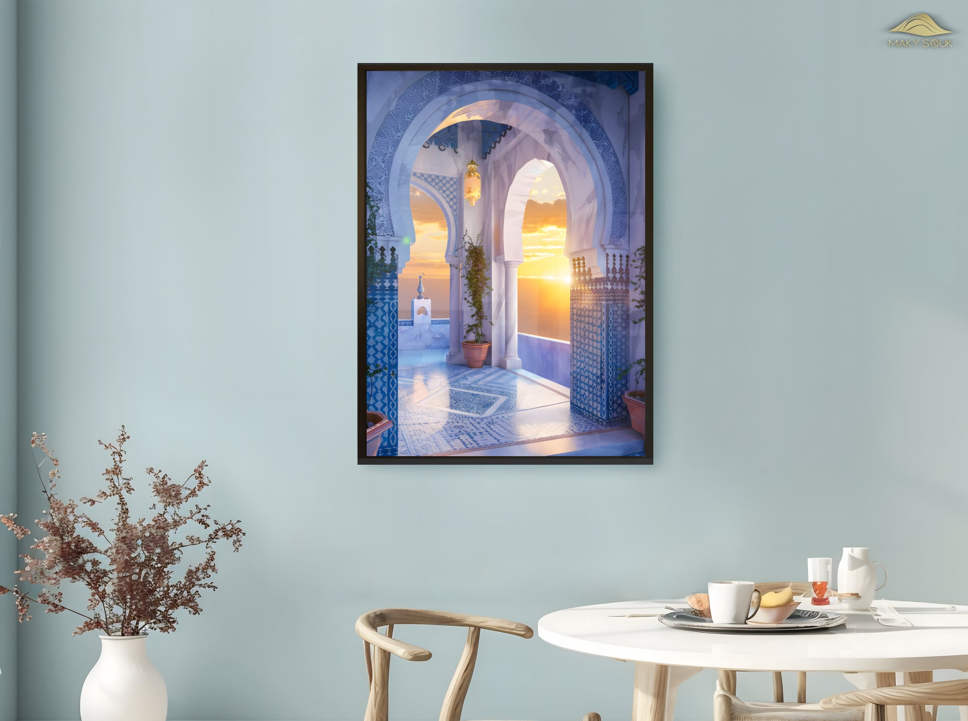Tauchen Sie ein in die atemberaubende Welt der blauen Stadt Chefchaouen. Dieses Poster fängt die charakteristischen Blautöne und die einzigartige Atmosphäre Marokkos ein und bringt sie direkt in Ihr Zuhause. Der detailreiche Druck betont die Schönheit der traditionellen arabischen Baukunst und schafft ein visuelles Erlebnis, das Ihre Wände zum Leben erweckt.
