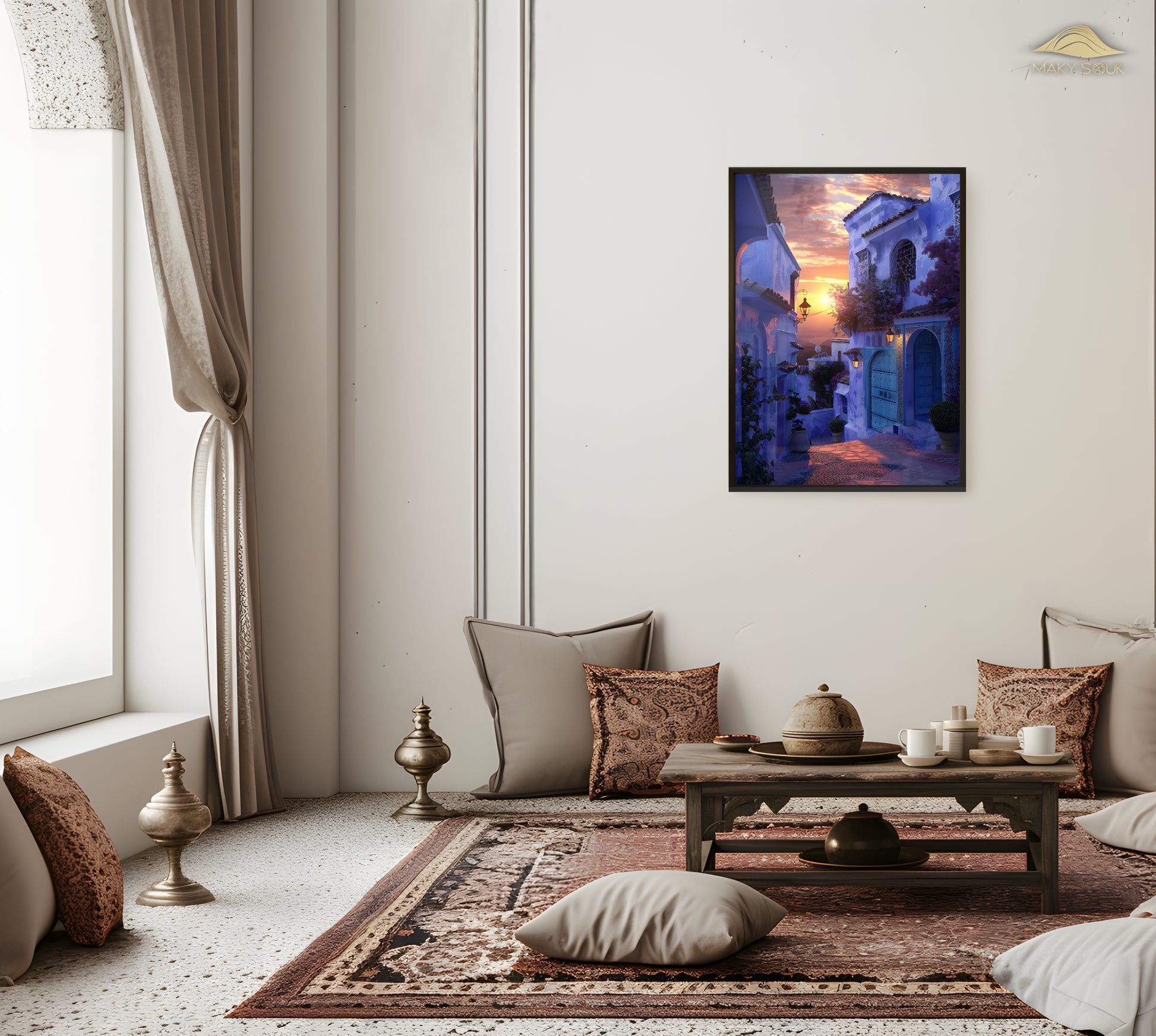 Tauchen Sie ein in die atemberaubende Welt der blauen Stadt Chefchaouen. Dieses Poster fängt die charakteristischen Blautöne und die einzigartige Atmosphäre Marokkos ein und bringt sie direkt in Ihr Zuhause. Der detailreiche Druck betont die Schönheit der traditionellen arabischen Baukunst und schafft ein visuelles Erlebnis, das Ihre Wände zum Leben erweckt.