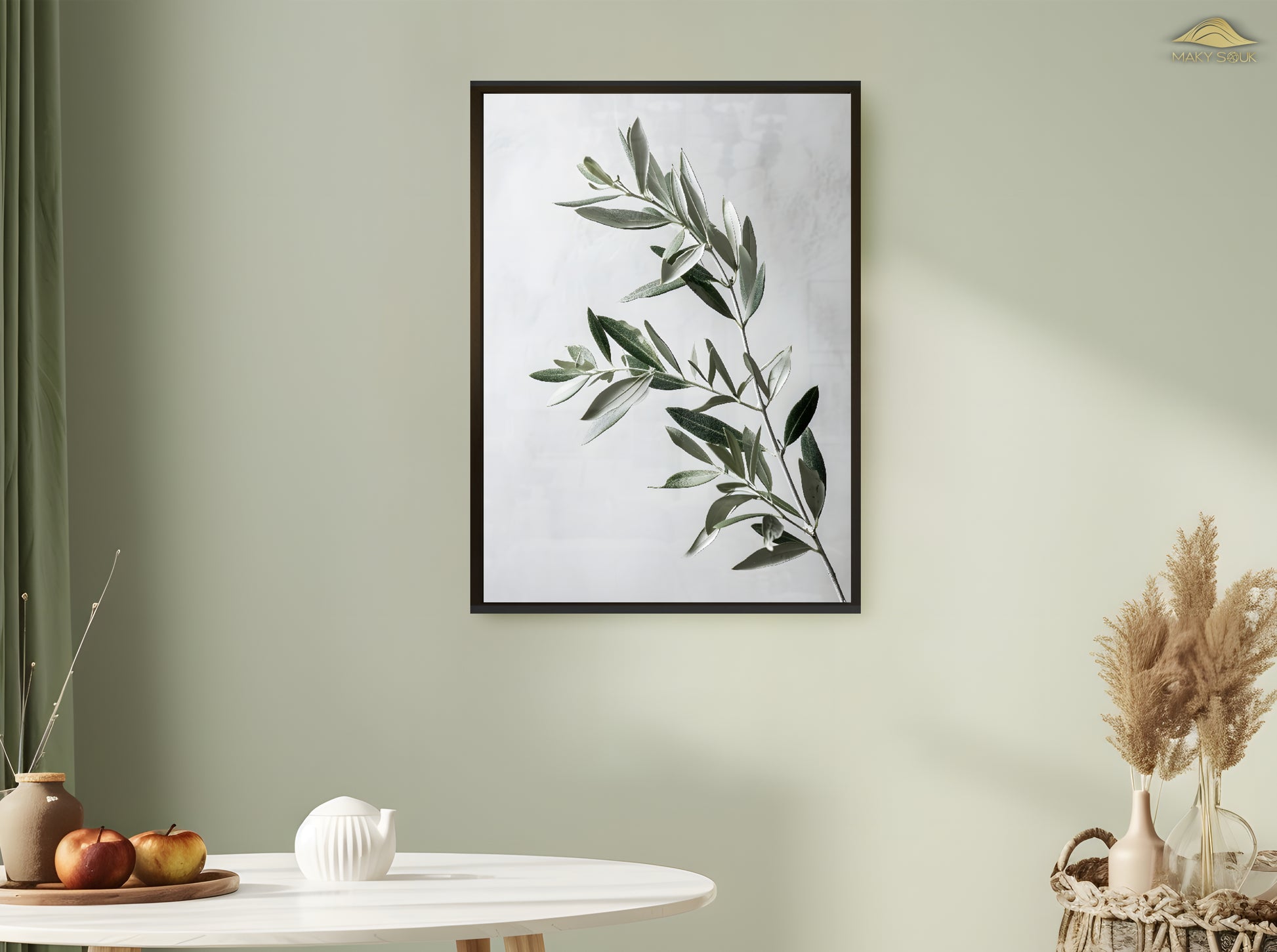 Genießen Sie die elegante Einfachheit eines Olivenzweigs, dieses Poster kombiniert minimalistische Schönheit mit kraftvollen visuellen Effekten, wodurch der Olivenzweig in seiner ganzen Pracht zur Geltung kommt. Der klare Kontrast und die subtile Farbgebung schaffen eine stilvolle Atmosphäre für Ihr Zuhause.