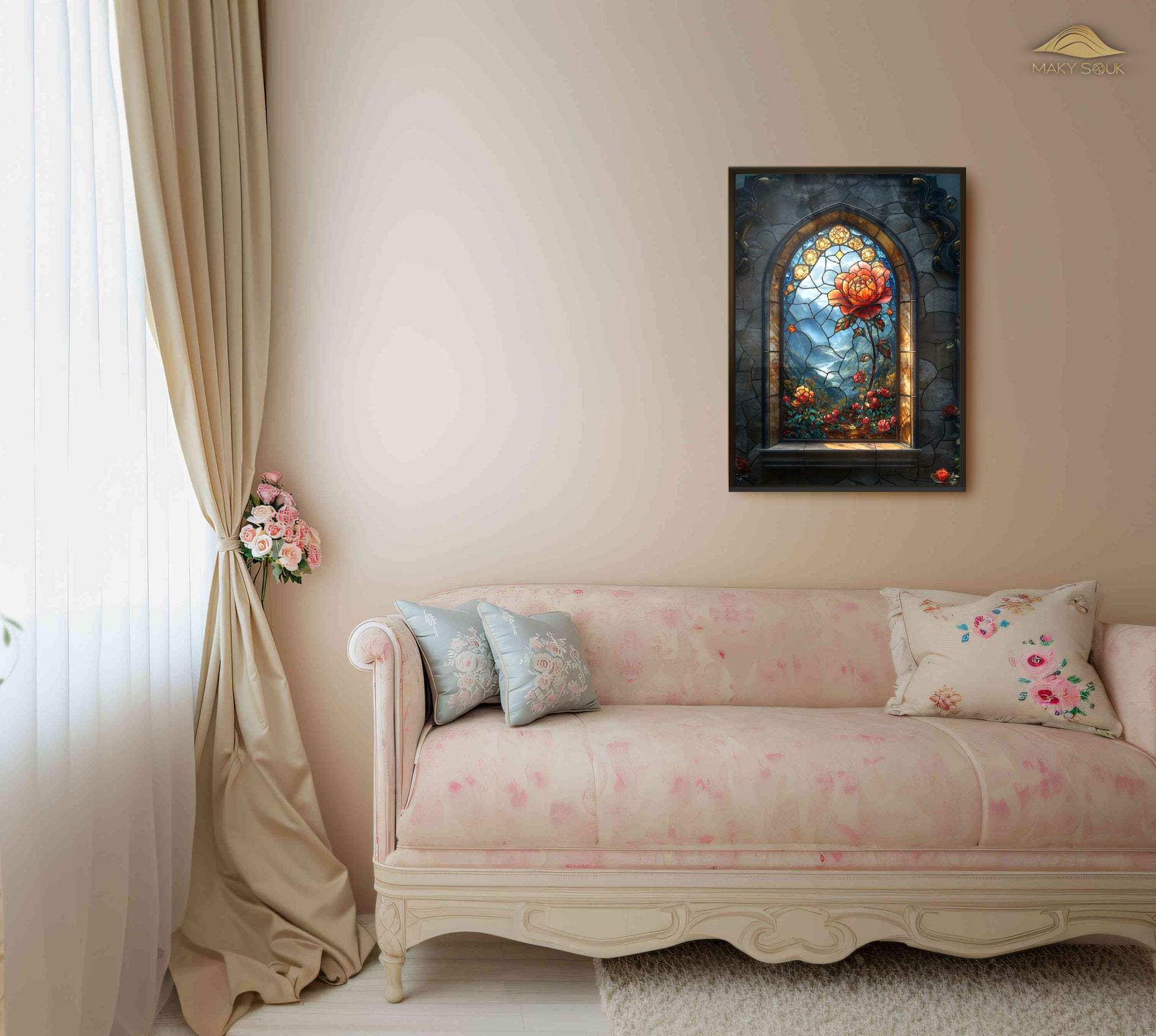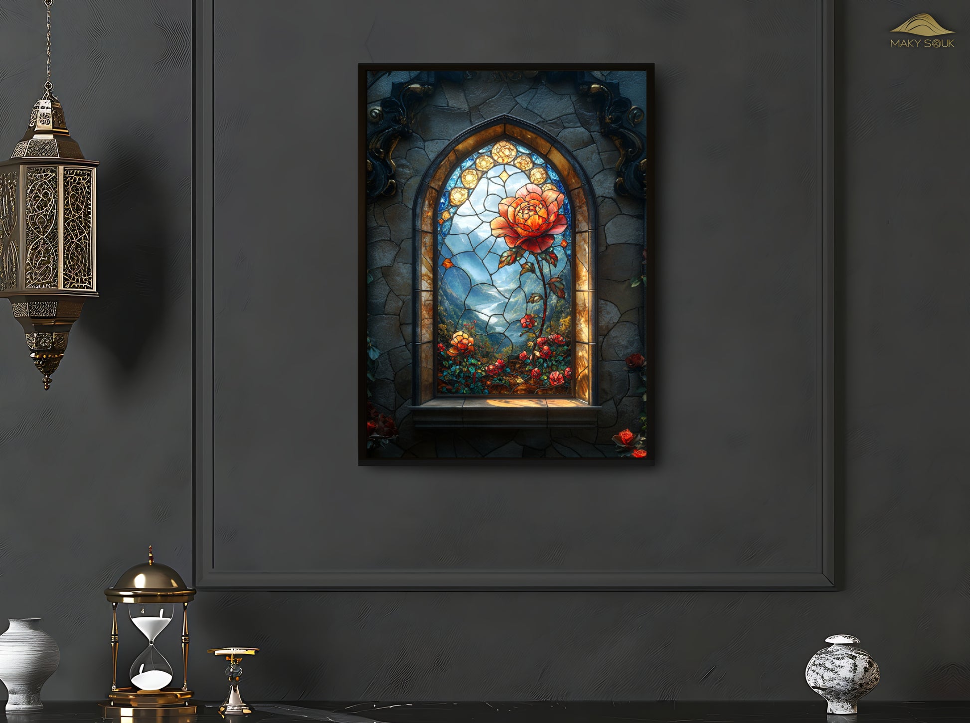Dieses Design fängt die Schönheit einer Rose in einem einzigartigen Glasfenster-Stil ein. Die leuchtenden Farben und die detaillierte Darstellung erzeugen eine fesselnde visuelle Tiefe und bringen die anmutige Schönheit der Rose in einem modernen, kunstvollen Rahmen direkt in Ihr Zuhause.